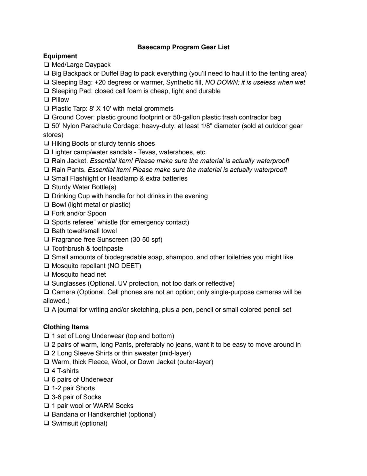 QUEER KINNECTION GEAR LIST